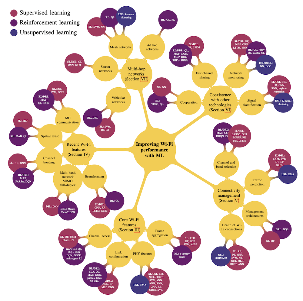 Szymon Szott, Katarzyna Kosek-Szott, Piotr Gawłowicz, Jorge Torres Gómez, Boris Bellalta, Anatolij Zubow and Falko Dressler, "Wi-Fi Meets ML: A Survey on Improving IEEE 802.11 Performance with Machine Learning," IEEE Communications Surveys & Tutorials, vol. 24 (3), pp. 1843–1893, July 2022.