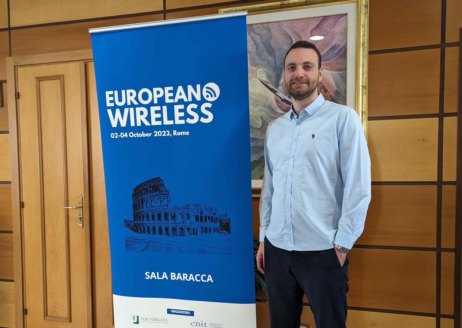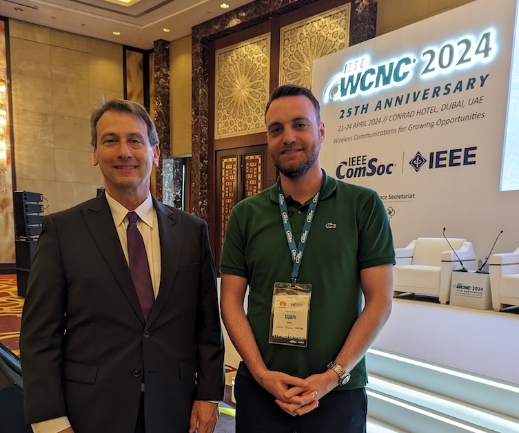 Christos Laskos presented our paper Latency Analysis of SDR-based Experimental C-RAN / O-RAN Systems at the IEEE ICC Workshop on Tactile Internet with Human-in-the-Loop (TIHL 2025), Montréal, Canada. In this paper, we present results from an extensive experimental evaluation of latency in commonly used SDR platforms, including USRP B210, N210, N310, and X410. For this, we implemented a novel round trip time (RTT) measurement method at the SDR driver level for precise RTT analysis. Our findings highlight the impact of SDR hardware, the connection to the host computer, sampling rates, and protocol optimizations. While all tested SDRs meet the latency requirements for 4G/5G-based C-RAN implementations (less than 500 µs), some approach the 25 µs one-way O-RAN delay, and none currently satisfy the more stringent 9 µs requirements of WiFi. We identify key optimizations, such as reducing the maximum transmission unit used in the fronthaul link layer and leveraging data plane development kit (DPDK) for low-latency networking, that significantly improves the SDR performance. Our results show that, in an optimal setup using X410 USRP, 100Gbe Ethernet fronthaul, DPDK, and optimal maximum transmission unit (MTU) size, the worst-case RTT stays below 65 µs.Paper Presentations at IEEE VNC 2025